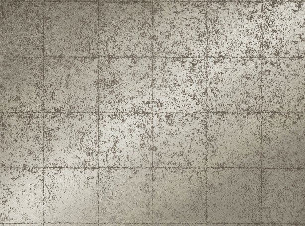 Description: A square tile design with an imperfect, industrial feel printed in a palette of burnished metal.